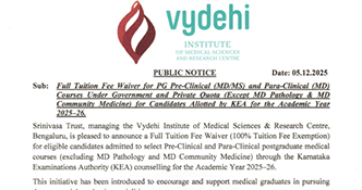 Full Tuition waiver for PG Pre-Clinical/Para Clinical Courses for the year 2024-25